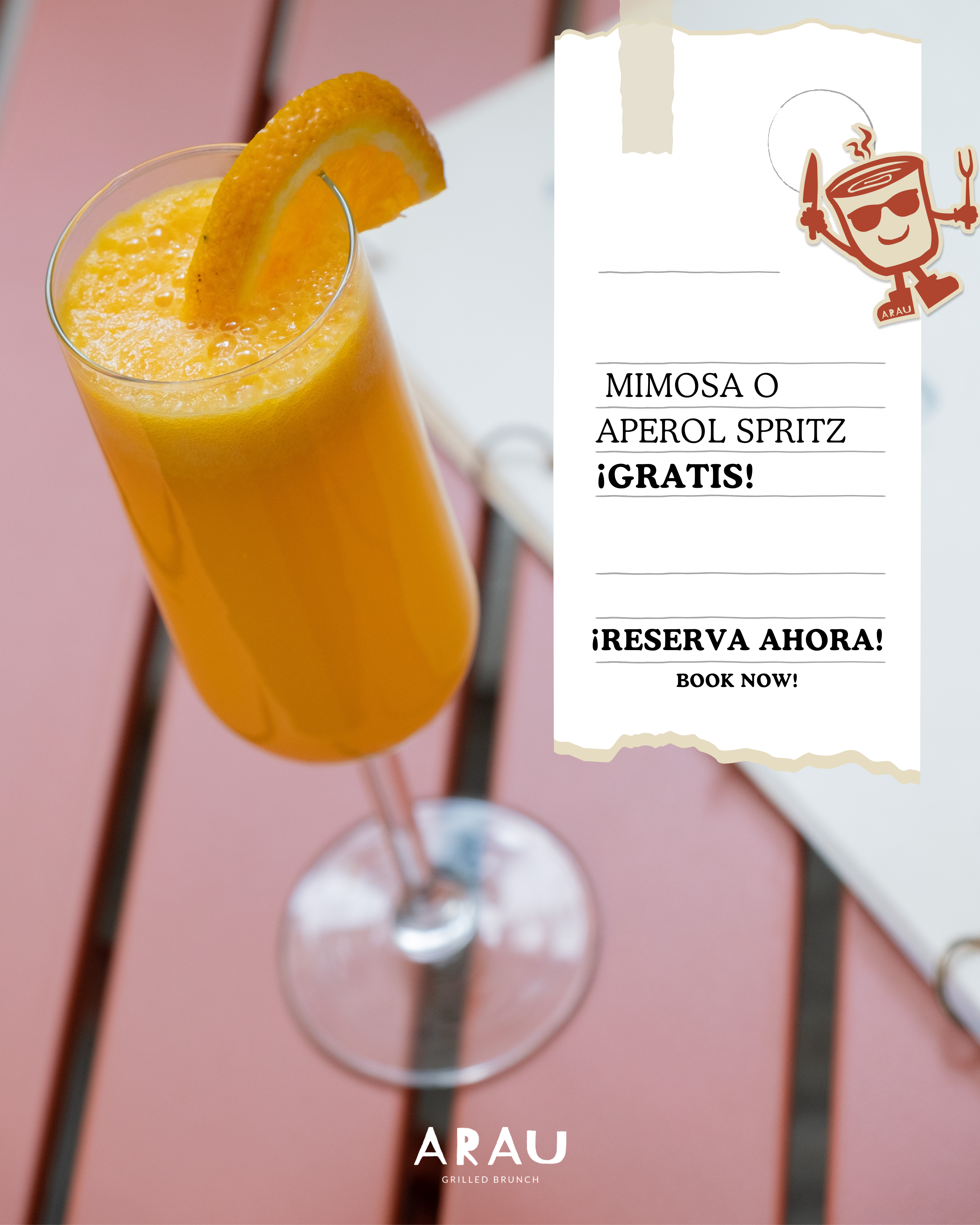 🥂 Beneficio: 1 Aperol Spritz, 1 copa de cava o 1 copa de mimosa sin cargo por persona por reserva.
